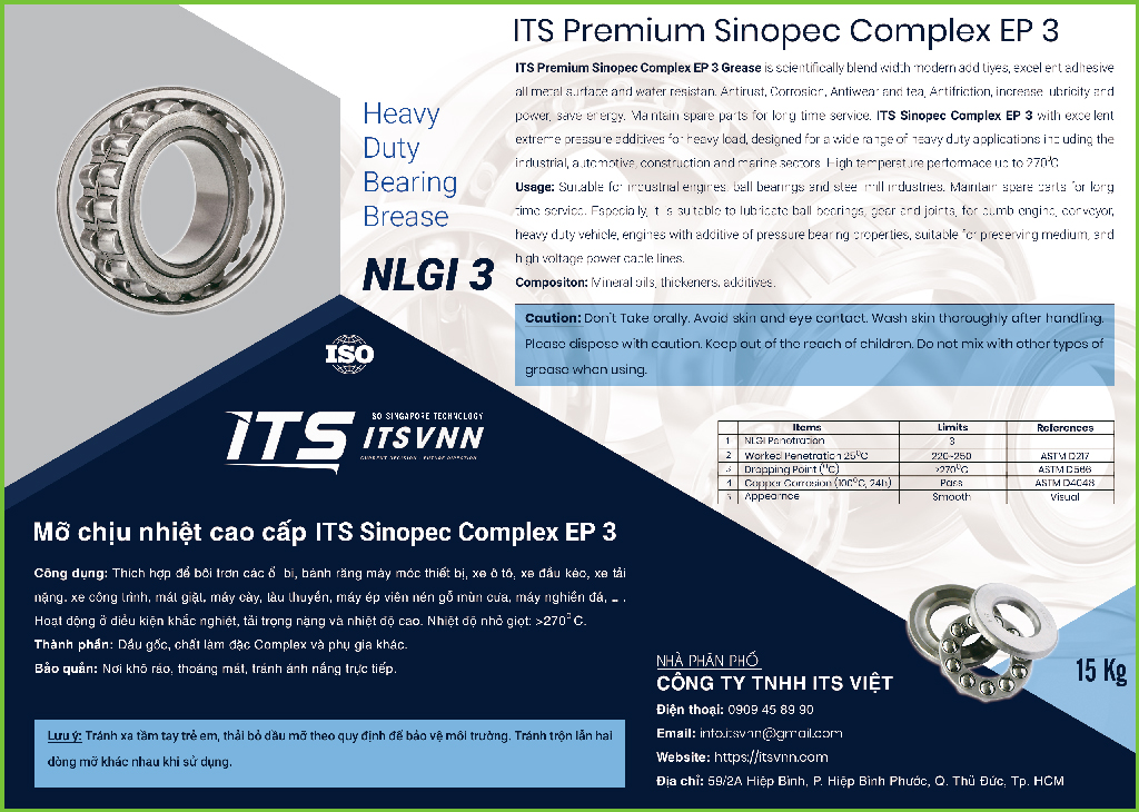 THÔNG TIN VỀ MỠ CHỊU NHIỆT CAO CẤP ITS SINOPEC COMPLEX EP 3 CHÍNH HÃNG TẠI SIÊU THỊ VÒNG BI